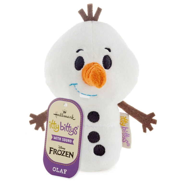Cuddle up with this lovable itty bittys Olaf plush. The always-sunny snowman from Disney’s “Frozen” and “Frozen 2” animated movies has a lot to say, and you can hear him talk by squeezing his belly. This sweet snowman stuffed animal makes a great gift for Olaf fans of any age.