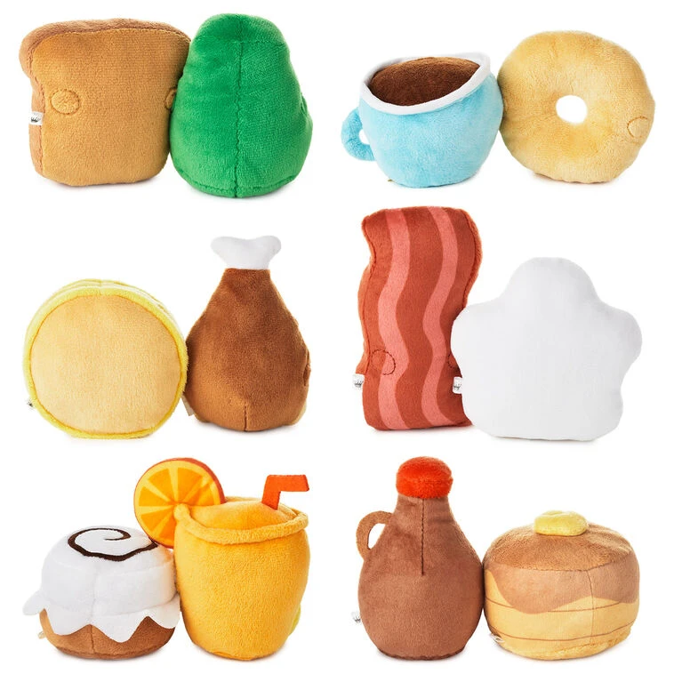 Spread smiles and add even more anticipation to the holidays with this surprise Better Together mini mystery friend toy! Each mystery box contains one plush breakfast-themed food character with embedded magnets, weighted body and feet and embroidered details, packaged at random, and comes “blind” packaged in a sealed box to open at home. Possible cute little treats include:
