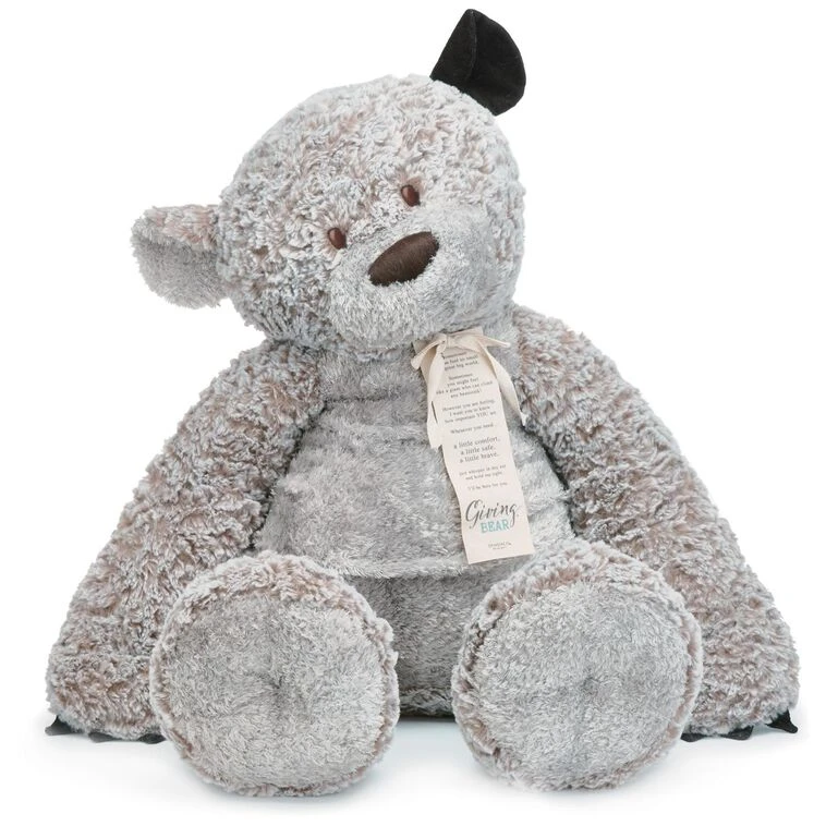 Big and furry and just right for warm hugs, this soft jumbo-sized bear stuffed animal makes a wonderful companion to a child or anyone who needs a little comfort and love. Standing 36-inches high, Giving Bear is more than just your average teddy bear friend. This precious fellow comes with an endless supply of hugs, and his contrasting corduroy ear shows he is a very good listener. Giving Bear comes with a special bookmark that carries a heartfelt message.
